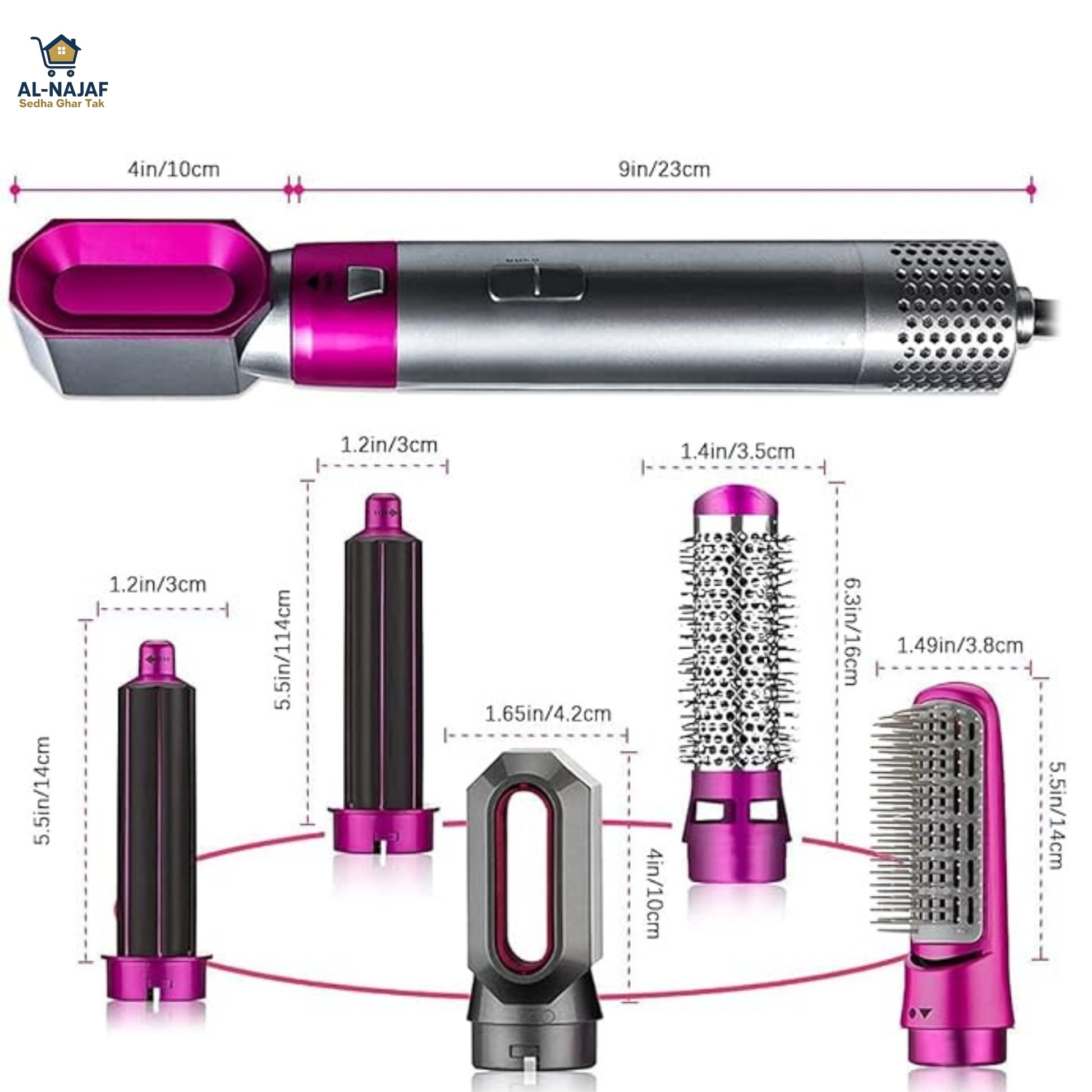 Isme multiple attachments hain jo har hairstyle ko effortless banate hain — chaahe aapko silky straight look chahiye, bouncy curls ya phir natural waves.