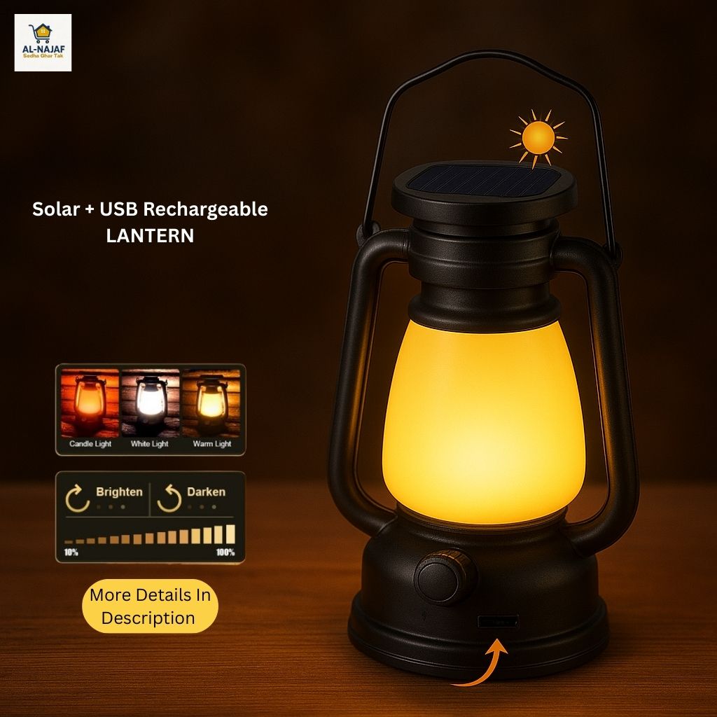 Rechargeable Solar Dimmable USB Camping Lantern – ek stylish, modern aur showpiece-worthy lantern jo dual charging technology ke saath aata hai (Solar + USB). Iska premium aur elegant design sirf light ke liye nahi balki decoration ke liye bhi perfect hai.