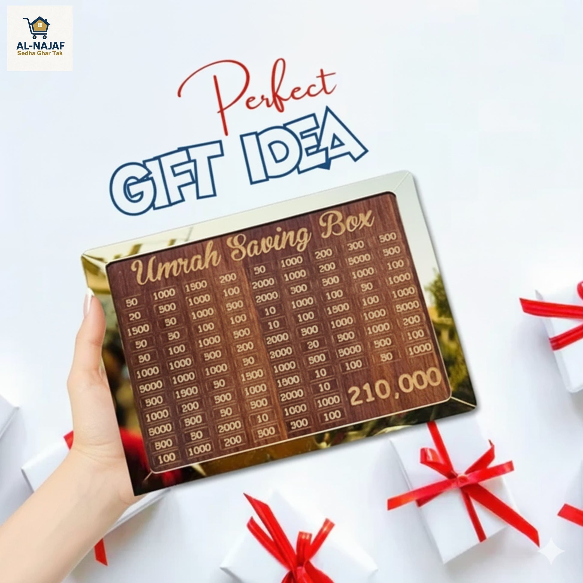 Umrah Saving Box ek unique aur meaningful product hai jo specially is liye design kiya gaya hai taake aap apne Umrah ke liye paise asaan tareeqe se save kar saken. Ye box ek spiritual aur motivational reminder hai jo aapko apne Umrah ka sapna pura karne mein madad karta hai.