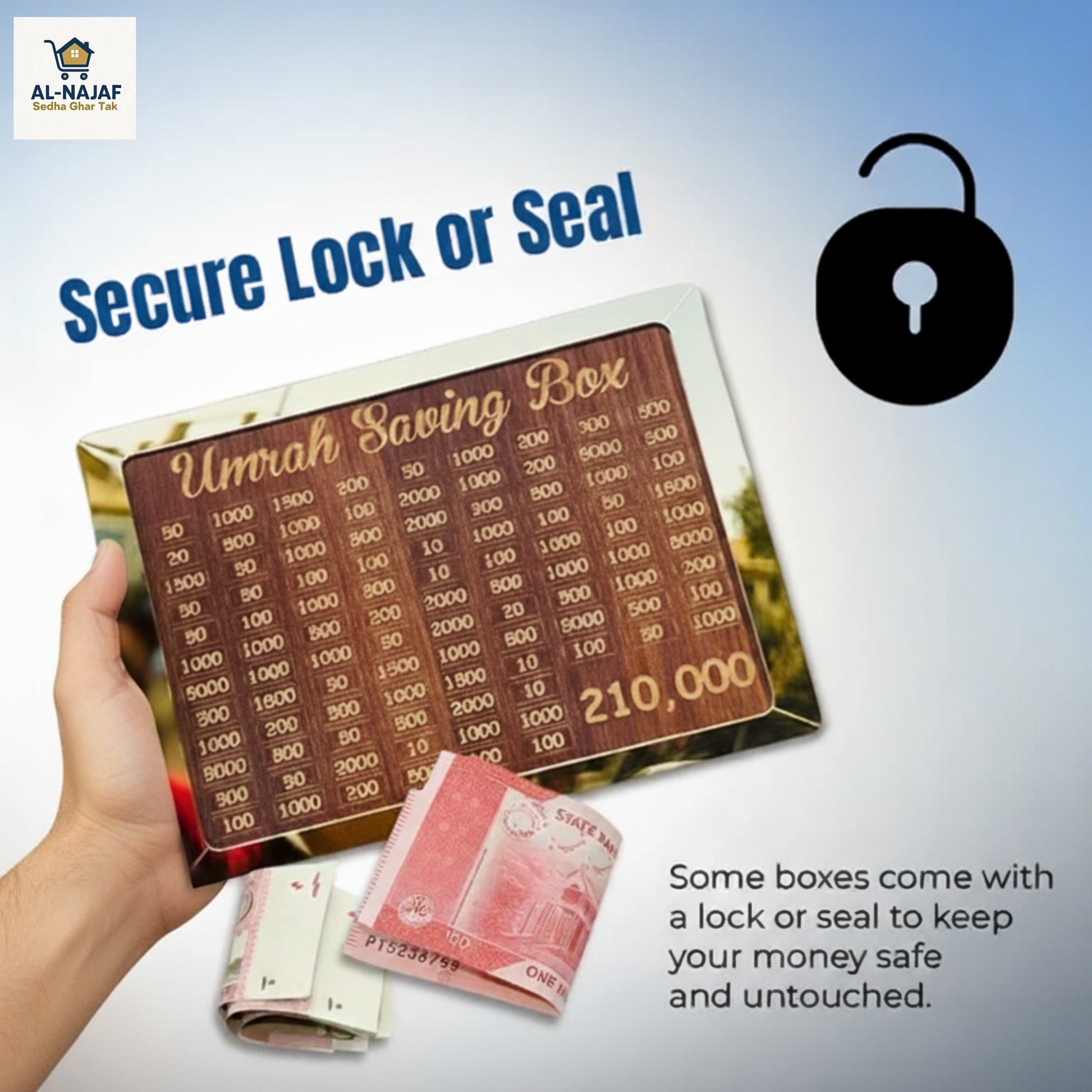 High-quality wooden design aur secure lock system ke saath, ye Umrah Saving Box not only safe hai balki ek elegant decorative piece bhi hai jo ghar mein rakha ja sakta hai. Ye box apne pyaron ko gift karne ke liye bhi ek bohot hi thoughtful choice hai.